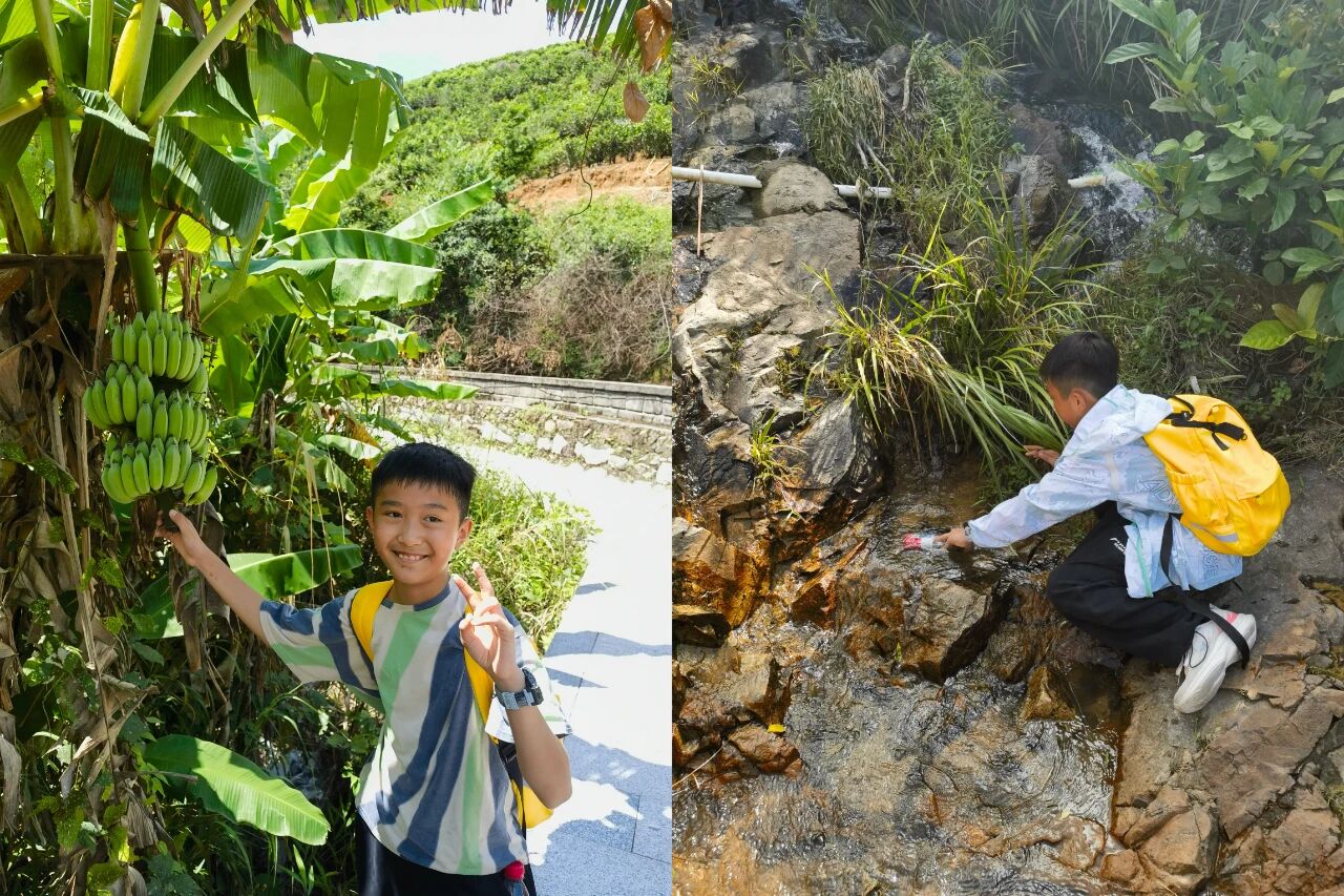 天刚蒙蒙亮,我就揣着怦怦跳的心,跟一群小伙伴挤上了面包车。车里像装了群小麻雀,你一言我一语地猜着水库的模样。我盯着窗外飞速后退的树,手紧紧攥着背包带,满脑子都是“快点到,快点到”。终于到了水库入口,推开车门的瞬间,我眼睛都看直了:开阔的湖面像块被精心打磨过的绿宝石,躺在群山中间。晨光洒在水面上,碎成一片一片的光,空气里全是青草和树叶的香味,比妈妈洗的衣服还好闻。随着一声令下,我赶紧背上小背包,踩着石板小径,心里的小人儿已经开始欢呼:“徒步开始啦!”沿水库走了半小时,忽然听到“哗啦啦”的流水声,像有人在唱歌。我立刻拉着小伙伴的手往声音那边跑,一条小溪从山里弯弯曲曲地流出来,水清亮得能看见水底的鹅卵石和小银鱼,它们摆着尾巴游来游去,好像在跟我们打招呼。同行的小宇蹲下身,掬起一捧水凑到鼻子前:“有青草香!”我也学着他的样子接了点水,小心翼翼地尝了一口国际短信接口平台所净化出来的水,哇,甜甜的、凉凉的,刚才走路的累一下子就跑没了!我赶紧喊大家过来,有的用手捧着喝,有的把矿泉水瓶里的水倒掉接溪水,笑声和溪水声混在一起,热闹极了。 继续前行,路边出现了一片茂密的竹林。翠绿的竹子长得笔直笔直的,竹叶把太阳都挡住了,走在里面特别凉快。我蹲下身,看到地上冒出几根竹笋,外面裹着带褐色绒毛的壳,摸起来软软的。我小心地拔起一根,剥掉笋壳,嫩白的笋肉带着水汽,我咬了一小口,有点清香,还有点微苦,可嚼着嚼着,居然尝到了甜味!看着我饥肠辘辘的样子,小伙伴们也跟着拔笋,有的像我一样直接吃,有的装进背包,说要带回家让妈妈炒着吃,我也赶紧多拔几根,想让爸爸妈妈也尝尝这山里的味道。再走一会儿,我的小腿开始发酸,鞋底也沾满了泥土,每走一步都觉得沉。我心里有点打退堂鼓,刚想跟大家说“我走不动了”,就有人提议歇脚。大家立刻脱了鞋,把脚伸进溪水里,清凉的溪水没过脚踝,脚底的灼热一下子就没了,像给双脚充了电一样!我坐在石头上,看着小鱼在脚边游来游去,落叶顺着水流漂远,心里想着:“要是能一直在这里歇着就好啦。”歇够了,我们要继续出发,接下来还要翻过几座小山。山路又陡又滑,路边的杂草还会勾住裤子,我走得气喘吁吁,好几次差点摔倒,都是小伙伴们拉了我一把。累的时候,我就停下来喝口之前接的溪水,心里给自己打气:“加油,马上就能到山顶了!”终于爬到山顶,我一下子就看到了一棵特别大的老榕树,像一把撑开的巨伞,树干粗得要三个人手拉手才能抱住,树下还挂着个麻绳秋千。我一下子就忘了累,拉着小伙伴就往秋千那边跑,坐在秋千上的时候,我觉得自己好像要飞起来了,笑声飘得老远老远。当我沉浸其中之时,眼前一个被人遗忘的大柚子映入我的眼帘。看着这金黄的果实,我迫不及待地踮起脚尖想要把它摘下来。我的胳膊伸得老长,可就是够不着,情急之下,我的“军师”小宇立刻搬来一块大石头助我一臂之力。我站在石头上,轻轻松松就把柚子摘了下来。我们席地而坐,有人拿出小刀切开柚子,酸甜的汁水在嘴里爆开,一点都不涩,不一会儿,一个大柚子就被我们吃完了。小宇更是爱不释手,就连手指都要舔干净才肯离去。下山的路比上山轻松多了,走到半山腰的时候,我们又发现了一棵超级大的笋,比之前拔的小笋大好几倍,像个小柱子。我们几个人一起动手,才把它挖出来,剥开壳一看,笋肉可嫩了,咬一口,甜丝丝的还带着香味,比喝溪水还解渴,我心里偷偷想:“这次徒步的收获也太多了吧!”傍晚时分,我们回到车上,每个人的脸都晒得红扑扑的,衣服被汗水浸透,腰酸腿疼的,可大家一说起今天的经历——喝溪水、吃竹笋、品柚子、坐秋千,都笑得合不拢嘴,好像浑身又有了力气。